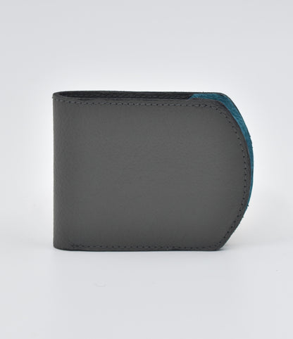 Billetera Minimalista de cuero Granulado - Combinado (Plomo, celeste y amarillo)